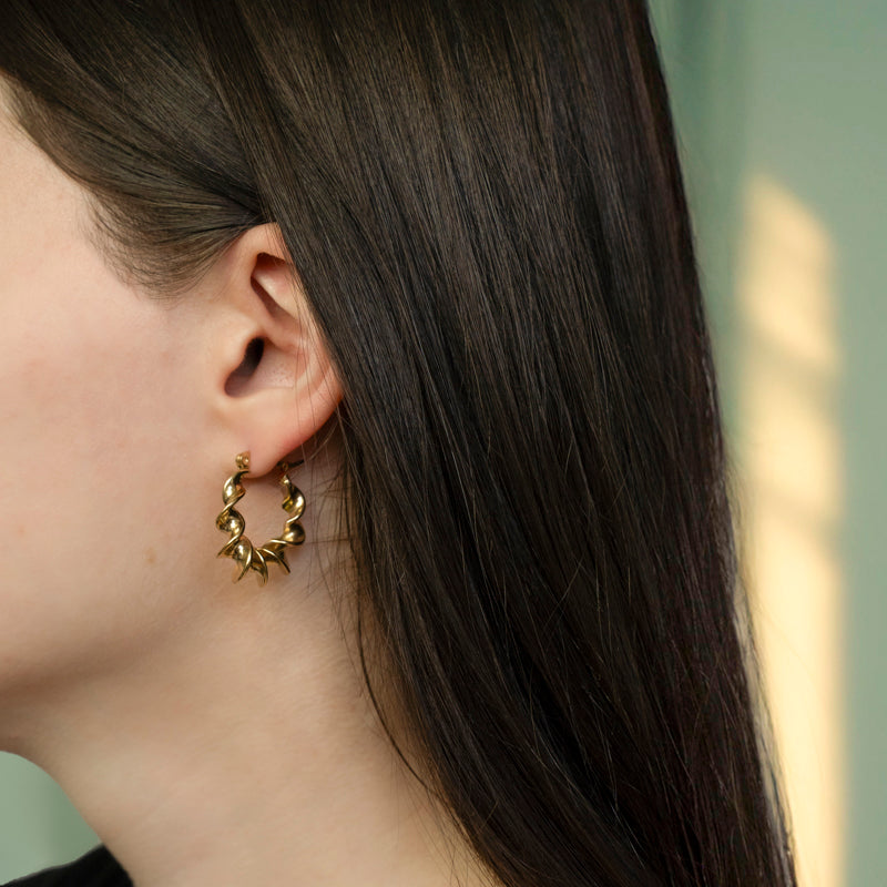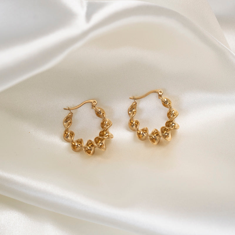 Deze gedraaide gouden oorbellen geven elke look een elegante en speelse twist. Gemaakt van duurzaam roestvrij staal, zijn ze veilig in gebruik dankzij het ontbreken van nikkel en lood.